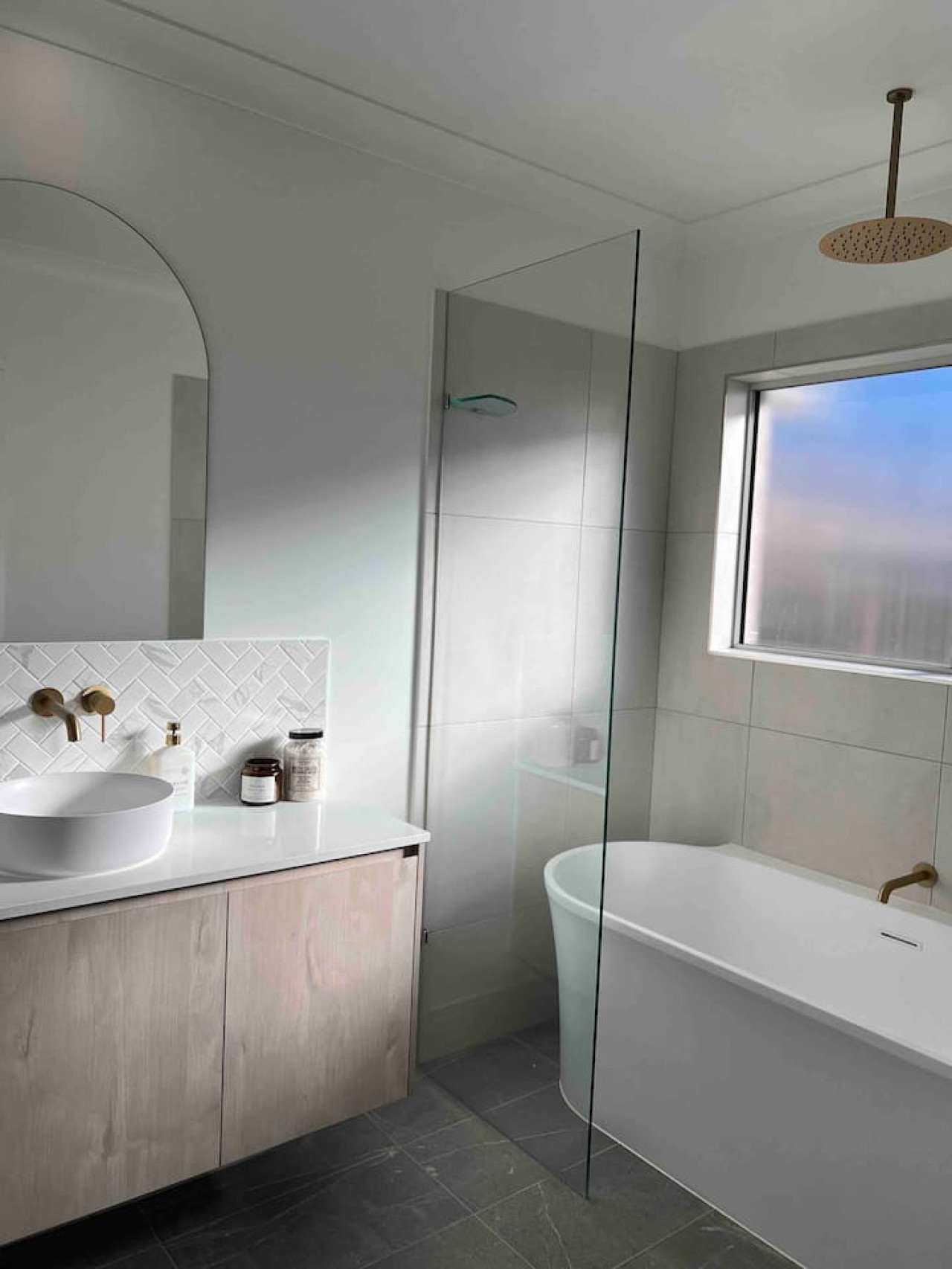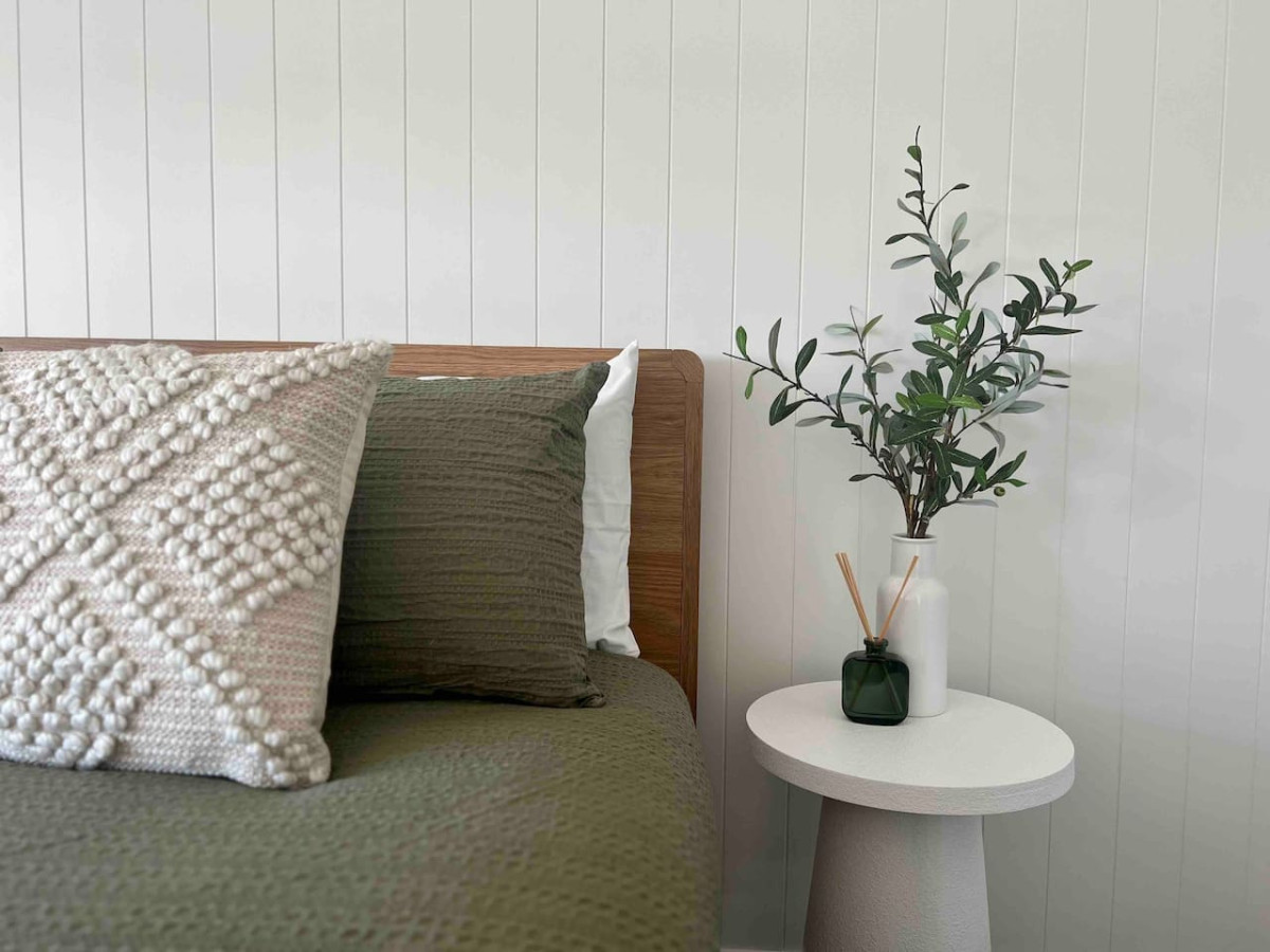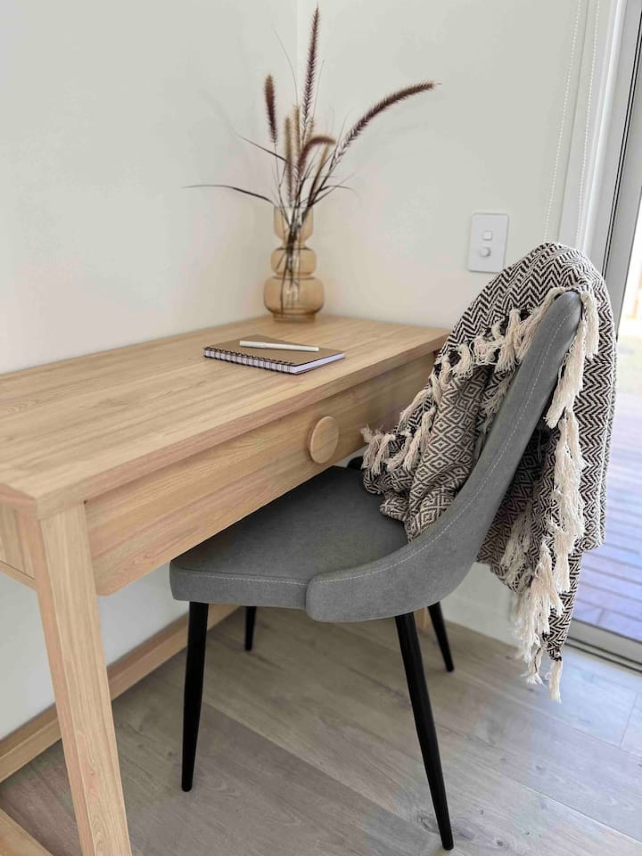 At the front of the home, you will find the main bedroom, which is generously sized with a queen-sized bed and a large walk-in robe that leads you into a luxuriously designed bathroom featuring double basin sinks and a shower big enough for 2.