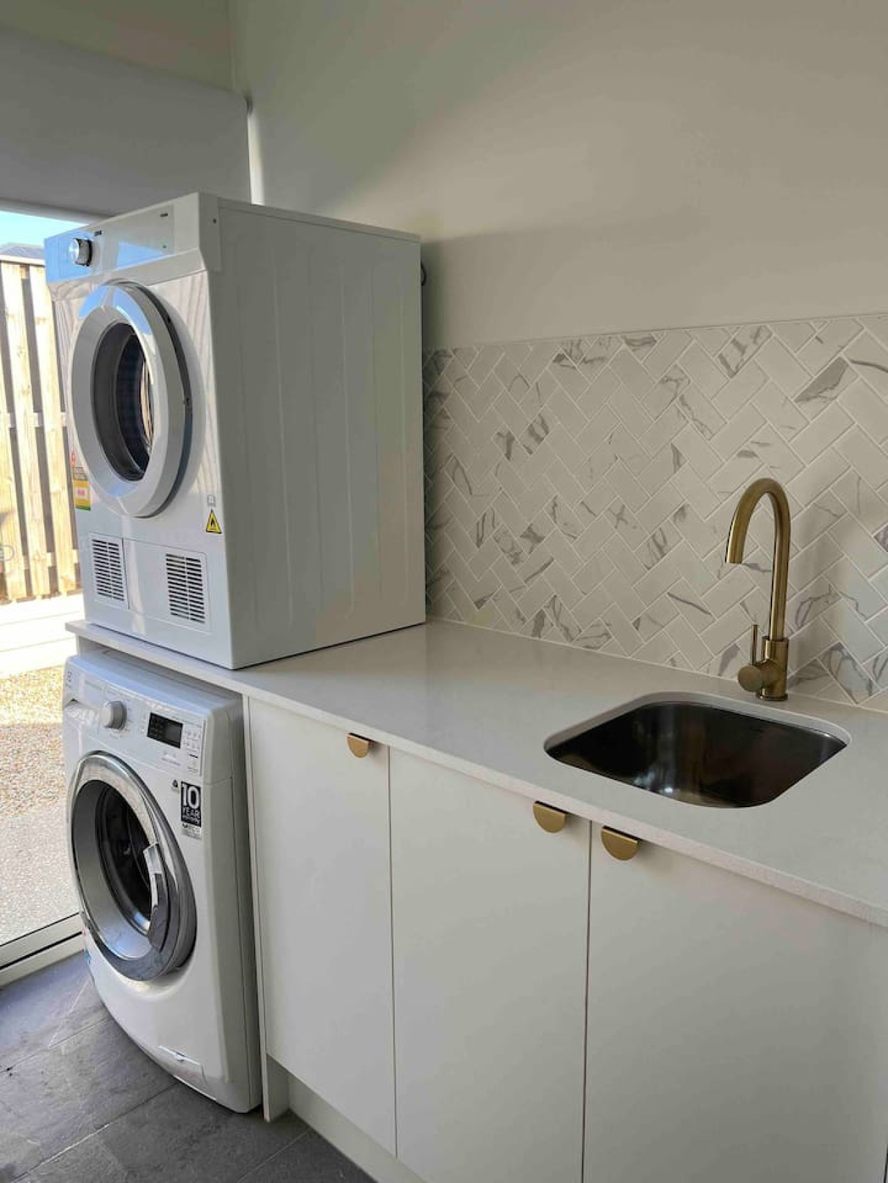 The laundry is located at the back of the home. We have your needs covered as we supply a washing machine and complimentary washing powder for the stay.