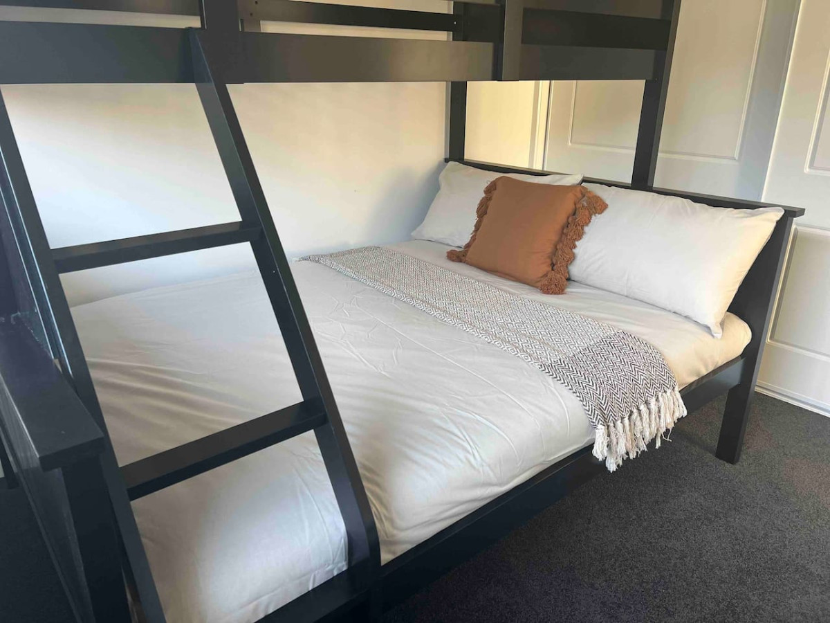 The third room has a bunk bed, with a double on the bottom and a single on top. It also has a built-in robe.