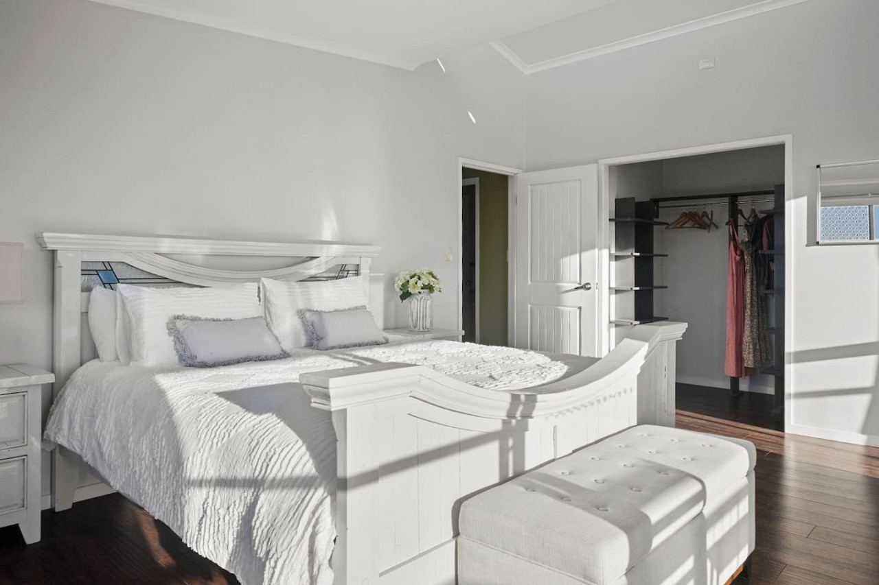 -Down the hall, you will find 4x bedrooms all with their own Queen-size bed and in 1 of the rooms is an additional king single bed, all rooms have ceiling fans, x2 bedside tables, bedside lights with ample clothes space during the stay.