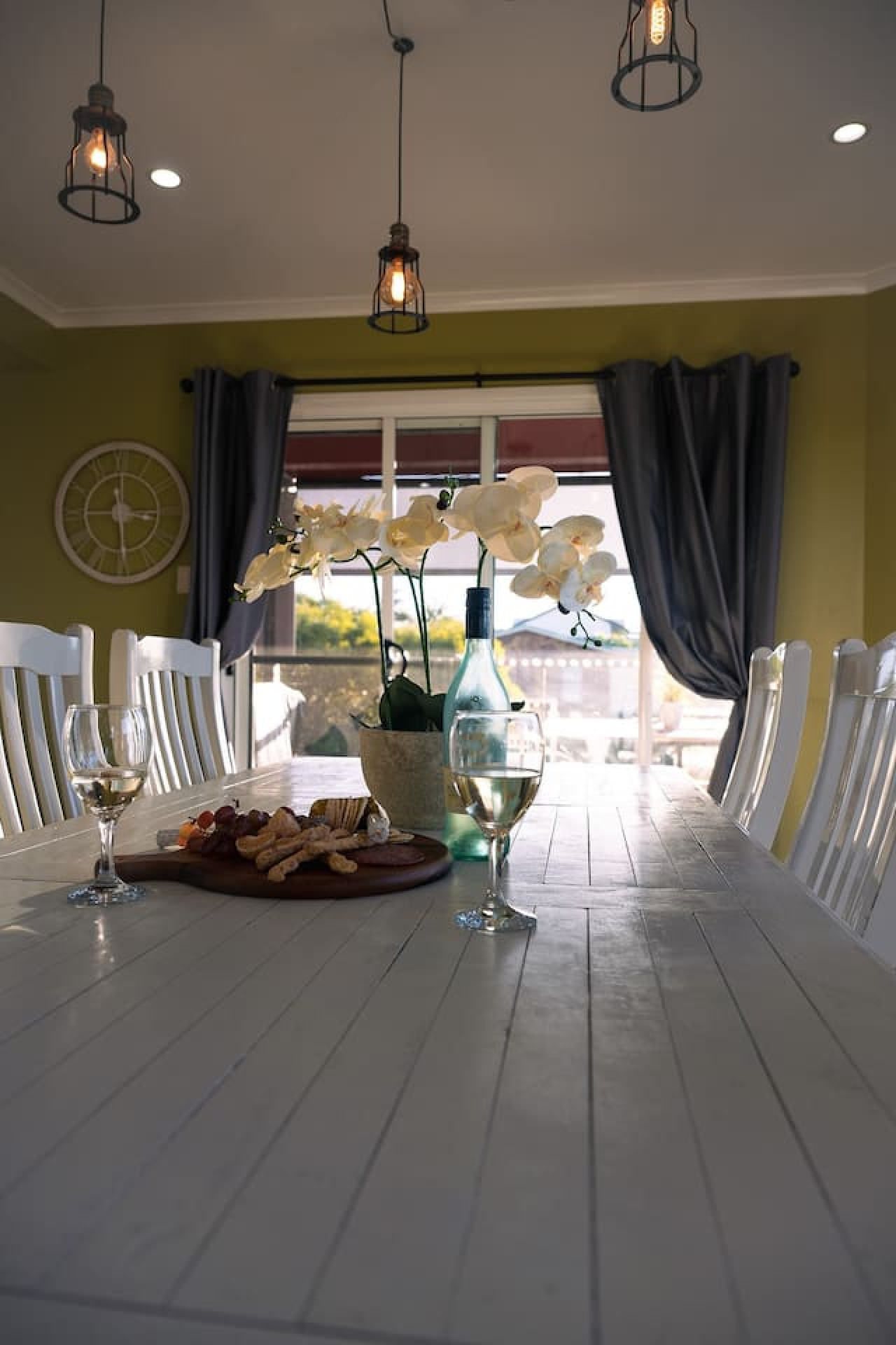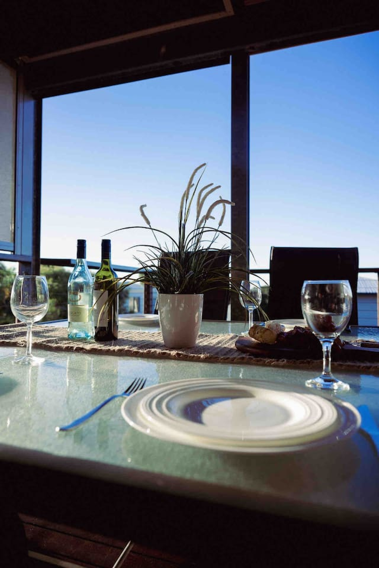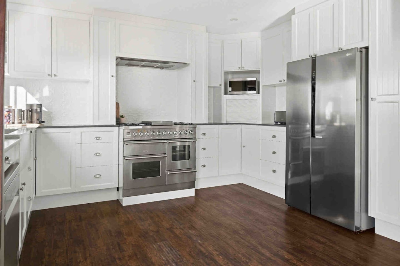 - A fully stocked kitchen equipped with all utensils and a commercial five burner gas cooktop that also features 2 electric ovens, guests can whip up their favourite meals and enjoy them in the large dining area or outside on the deck or with ample seating outdoors.