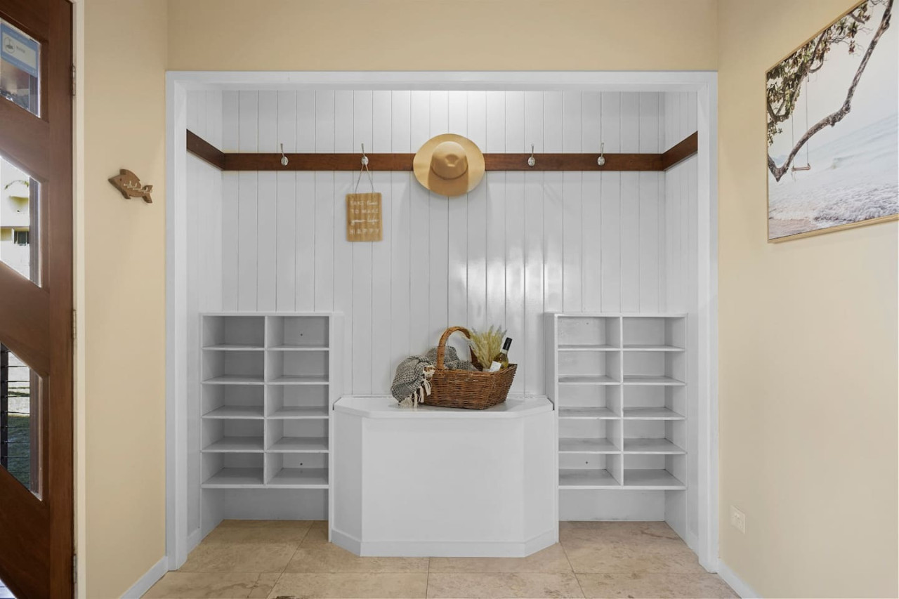 - Stay organized and stress-free with our designated 'mudroom' upon the entrance to the home; this area offers a convenient and functional space that provides a seamless transition from outdoor adventures to indoor relaxation.